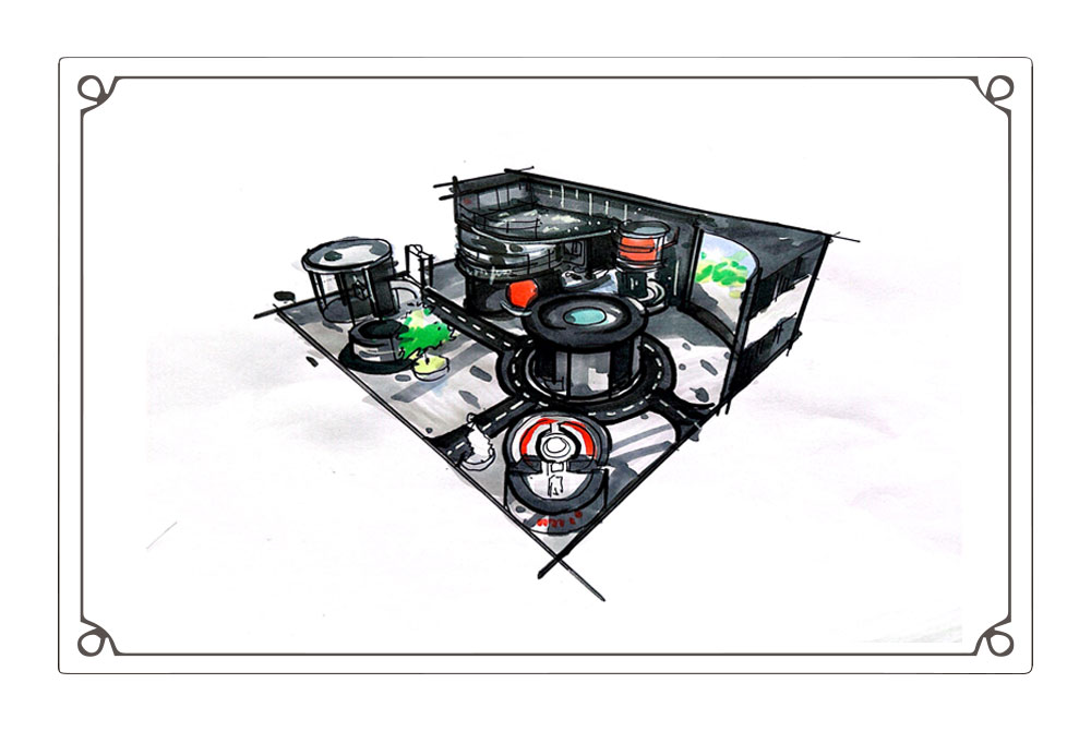 180㎡混泥土展臺展位設計效果圖